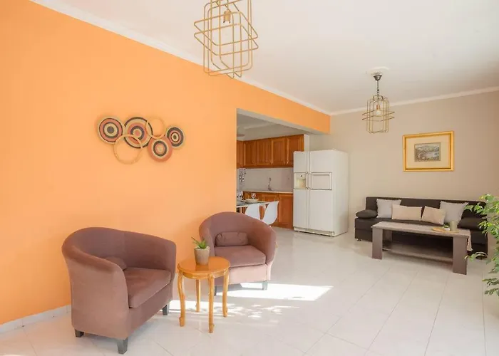 Apartmán New 2 Bedroom/ 2 Bath Ap.Nidri, Familia nabízí kompletní kuchyni i pokoje s balkónem, přístrojem na přípravu kávy a čaje, TV s plochou obrazovkou se satelitními kanály. Toto ubytování se nachází méně než 1 km od centra města, a Vodopády Dimosari leží v docházkové vzdálenosti.